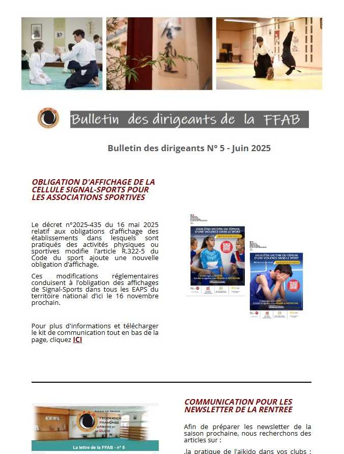 Vous trouverez ici le bulletin d'information n°5 destiné aux différents responsables de la fédération : responsables de clubs, d'organes territoriaux et CEN.