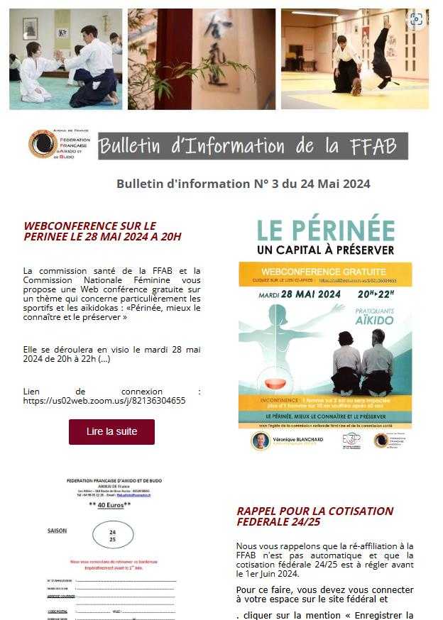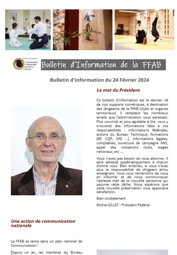 Vous trouverez ici le bulletin d'information n°6 destiné aux différents responsables de la fédération : responsables de clubs, d'organes territoriaux et CEN.