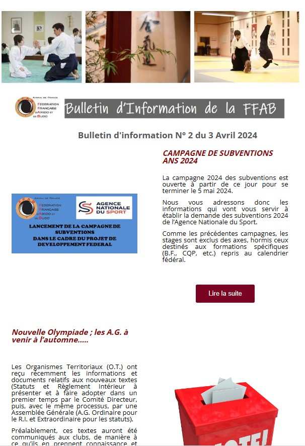 Vous trouverez ici le bulletin d'information n°2 destiné aux différents responsables de la fédération : responsables de clubs, d'organes territoriaux et CEN.