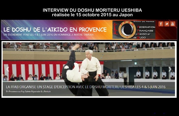 Interview du Doshu Moriteru UESHIBA réalisée par Fabrice CAST (CEN FFAB), Emmanuel PROUVEZE (traducteur), Aurélien BUFFET et Ivan VIBERT le 15 octobre 2015 au Japon.